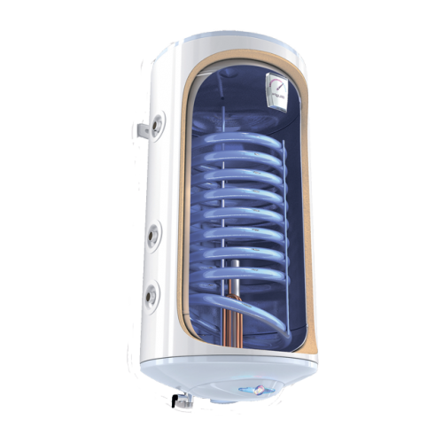 Принцип действия водонагревателей косвенного нагрева прост и заключается в следующем: нагревательный элемент (ТЭН) такого прибора не сам вырабатывает тепло, а подключается к газовому или твердотопливному котлу, или солнечному коллектору. Вода или другой теплоноситель, который циркулирует по отопительной системе, циркулируя по ТЭНу водонагревателя, отдает тепло воде, находящейся в баке. Нагрев воды таким способом намного экономичнее и быстрее в сравнении с обычным электрическим водонагревателем, а в тех случаях, когда нагрузка на электрическую сеть велика, косвенный нагрев может оказаться единственным способом горячего водоснабжения. Кроме того, большинство водонагревателей косвенного типа имеют повышенный коэффициент производительности, и если Вам нужно обеспечить горячей водой значительное количество потребителей, то бойлер косвенного нагрева – это одно из наиболее рациональных и экономически эффективных решений.