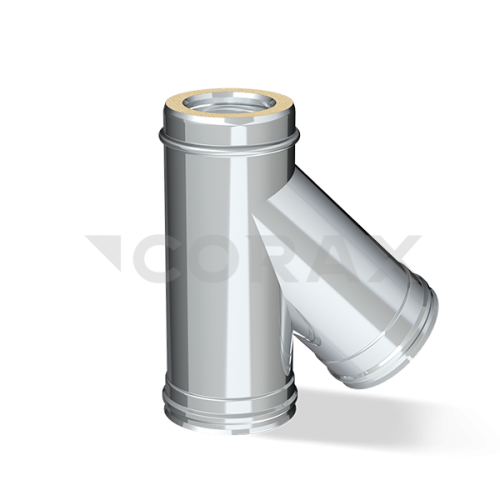 Сэндвич-тройник 135° используется для соединения дополнительного горизонтального участка дымового канала с основным вертикальным.