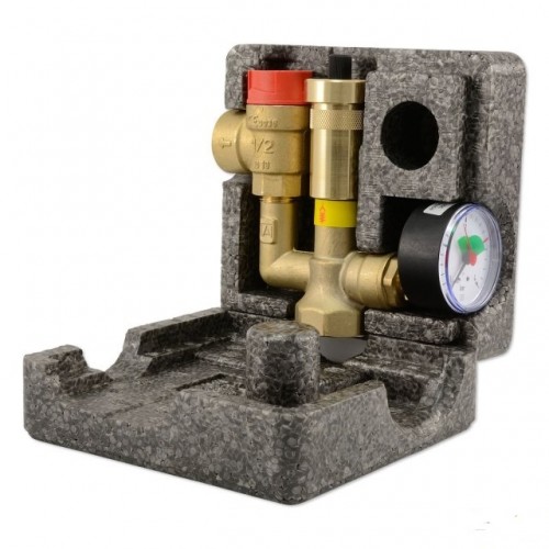 Группы безопасности котлов Afriso KSG mini 50 кВт предназначены для защиты закрытых систем отопления от гидравлических, термических перегрузок и завоздушивания. Группы безопасности монтируются в вертикальном положении на подающем трубопроводе, после котла. Между котлом и группой безопасности не должно быть запорной арматуры. Рабочая температура Tmax – 120°C.