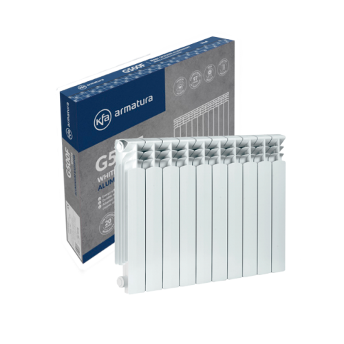 Алюминиевые радиаторы G500F/10 производят в Польше на заводе Armatura. Алюминиевые радиаторы изготовлены на заводе в секциях, состоящих их 10-и элементов, соединенных между собой стальными соединителями и уплотнены прокладками из технической фибры. В зависимости от требований, каждый из комплектов может быть смонтирован согласно индивидуальному запросу с различным количеством секций. Радиаторы изготовлены из высококачественного сплава алюминия и кремния методом литья под давлением. На внешнюю поверхность радиатора, на первом этапе, наносится антикоррозийный слой. Второй этап включает автоматическую окраску методом погружения. Третий этап — это нанесение отделочного слоя. Цвет RAL 9016.