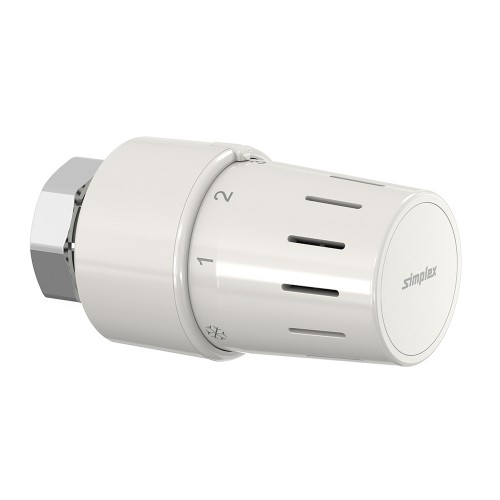 Выдвигающаяся термостатическая головка Simplex TC-S3 с установкой нуля (F35340) с дизайном в стиле минимализма, оснащенная жидкостным датчиком. Шкала настройки 1...5 (120 С-280 С соответственно, с шагом 40 С), "защита от замерзания" (70 С), режим "0", гистерезис +/- 0,2 К, время закрытия 28 минут. Имеет внутренний выжимной механизм фиксации выставленной преднастройки, возможно ограничение диапазона настроек.