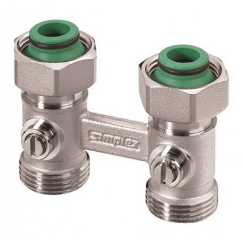 Узел нижнего подключения Simplex Standart D2 прямой - шаровой запорный механизм, без ограничителя поворотов, для обжимных соединений, который представляет собой конические элементы для компактных клапанных радиаторов с нижним подключением.