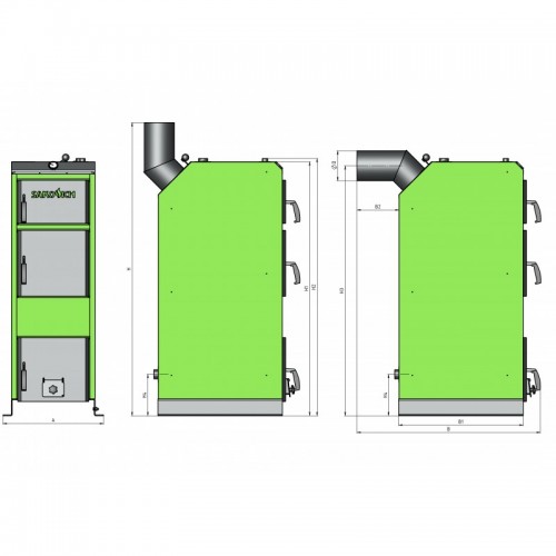 Твердотопливный котёл UNIVERSAL 50 кВт – это универсальный котёл для сжигания любого вида твёрдого топлива. Предназначен для центрального отопления жилых помещений или многоквартирных домов, хозяйственных, административных и прочих построек, магазинов и офисов. Длительность горения обусловлена большой площадью многоходового теплообменника, водонаполненной колосниковой решёткой, многоточечной регулировкой воздуха для горения и большим объёмом топочной камеры. Периодичность загрузки топлива (длительность горения) зависит от его калорийности, влажности и длительности тления, в среднем 6 часов на дровах и 18 часов на угле.
